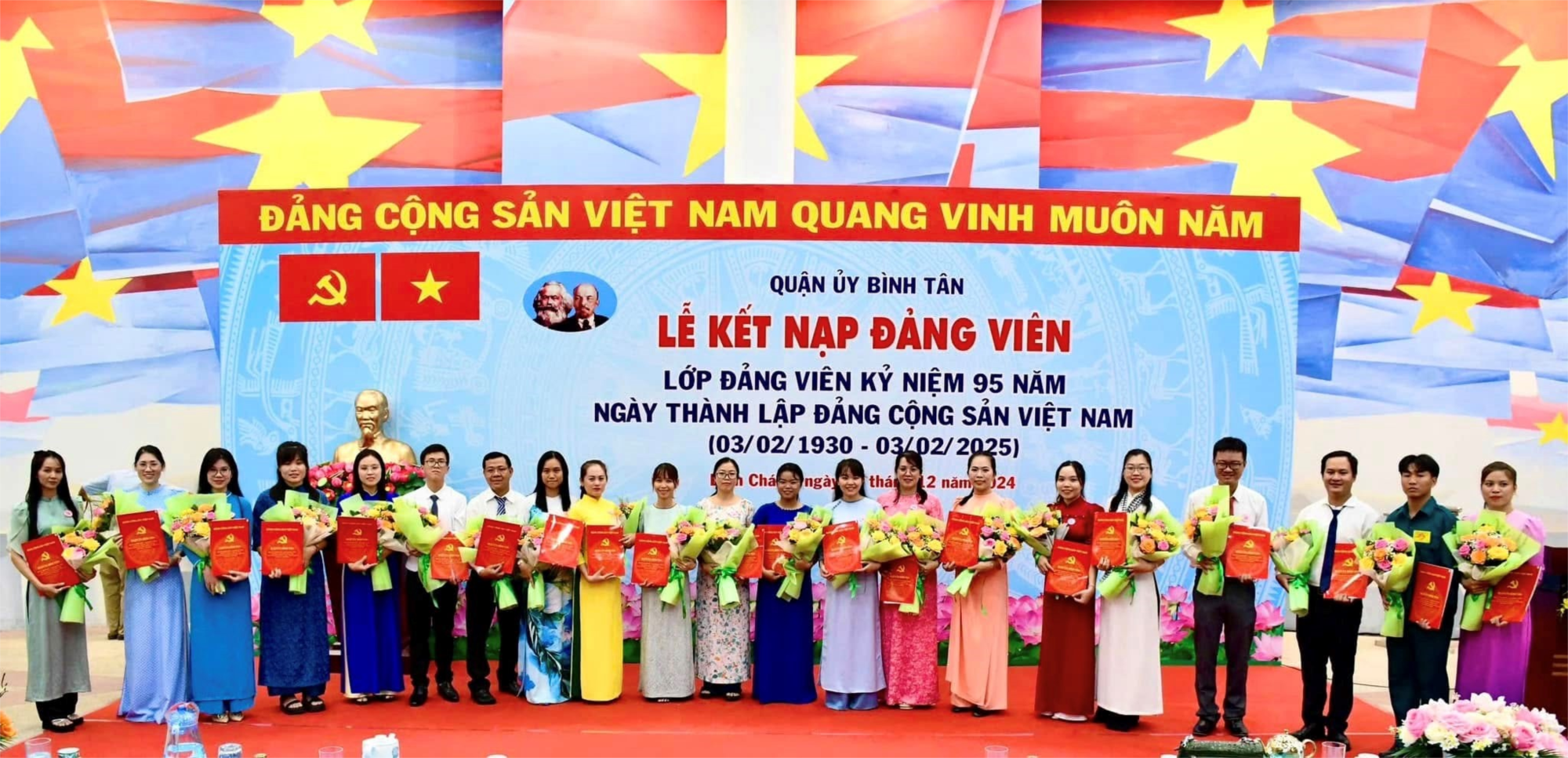 Sáng 7/12/2024, tại Khu truyền thống cách mạng cuộc tổng tiến công và nổi dậy Xuân Mậu Thân năm 1968, Ban Thường vụ Quận ủy quận Bình Tân tổ chức Lễ kết nạp đảng viên, lớp đảng viên kỷ niệm 95 năm Ngày Thành lập Đảng Cộng sản Việt Nam (03/2/1930 - 03/2/2025). Đại diện Chi bộ Trường THCS Bình Tân đã được vinh hạnh tham dự buổi lễ long trọng này.