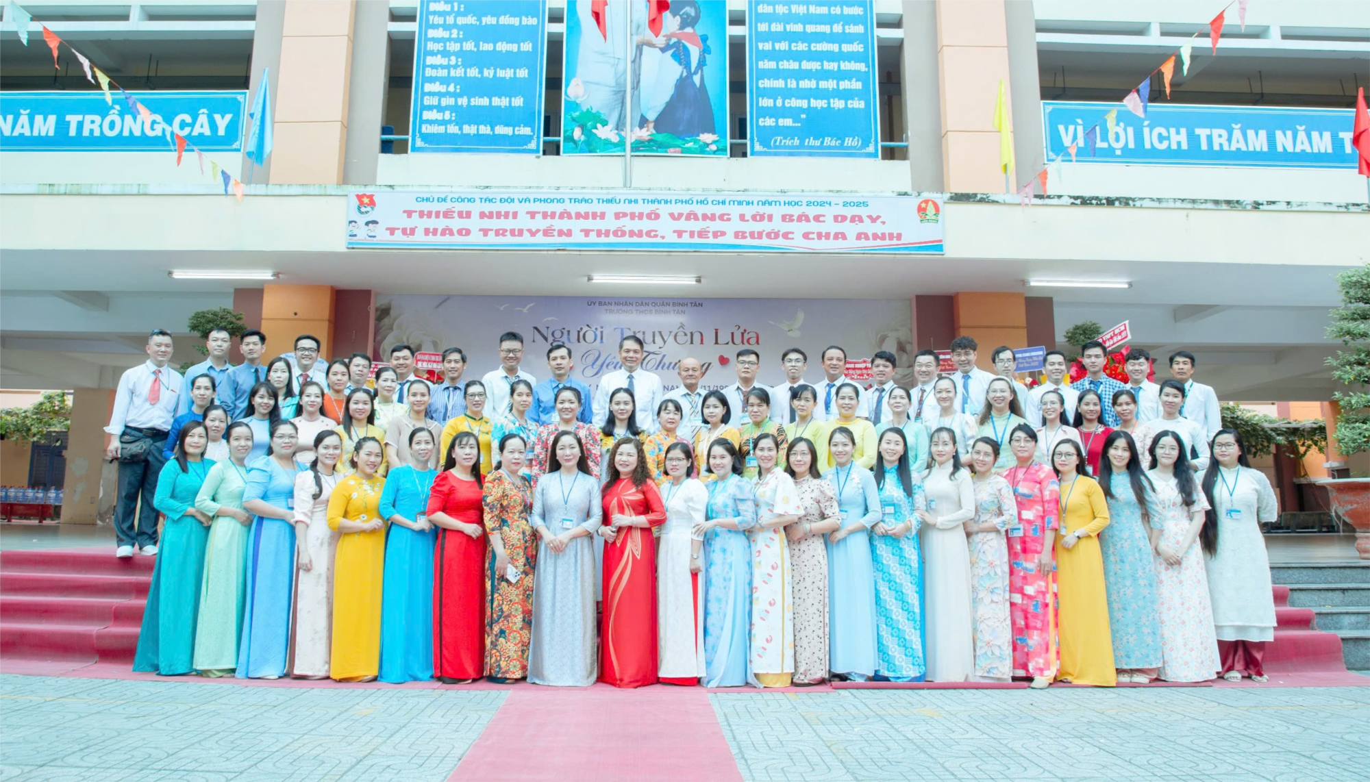 Câu ca dao ấy đã khẳng định được truyền thống tôn sư trọng đạo của dân tộc ta, đồng thời khẳng định được ý nghĩa, vai trò của người thầy trong đời sống xã hội. Sâu thẳm tự đáy lòng mỗi học sing đều bày tỏ lòng tri ân sâu sắc tới tất cả các thầy cô giáo - những người gieo hạt đã cần mẫn ươm những chồi non dâng đời, truyền lửa cho các em gặt được ngọt ngào. Vì thế, trường THCS Bình Tân đã tổ chức Lễ Chào mừng Ngày Nhà giáo Việt Nam 20/11 với chủ đề “Người truyền lửa yêu thương” vào ngày 20/11/2024