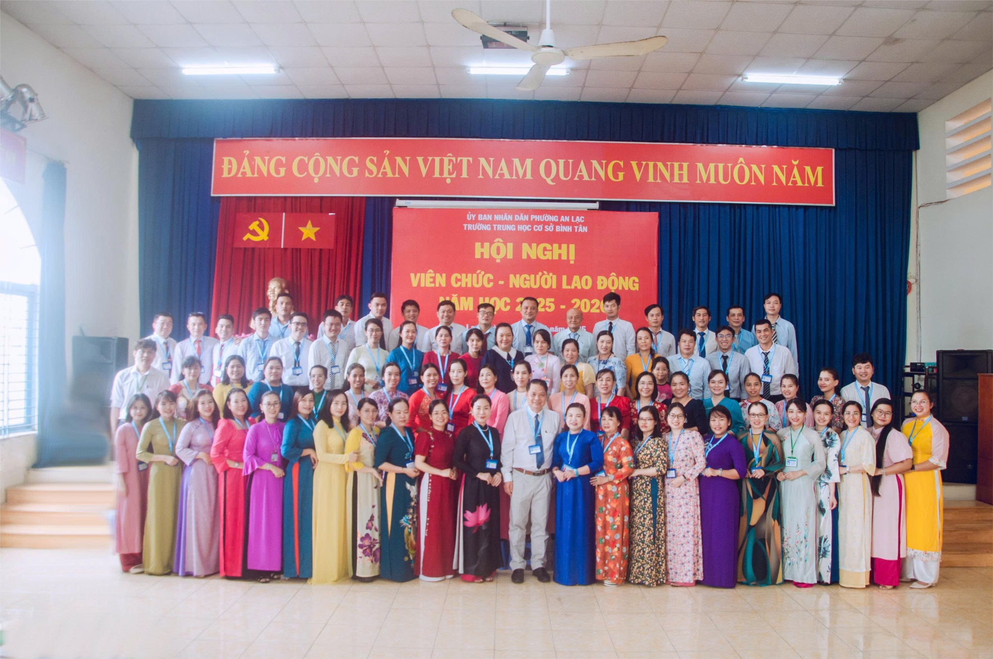 Tập thể Hội đồng sư phạm trường THCS Bình Tân tại Hội nghị Viên chức – Người lao động 2025 - 2026