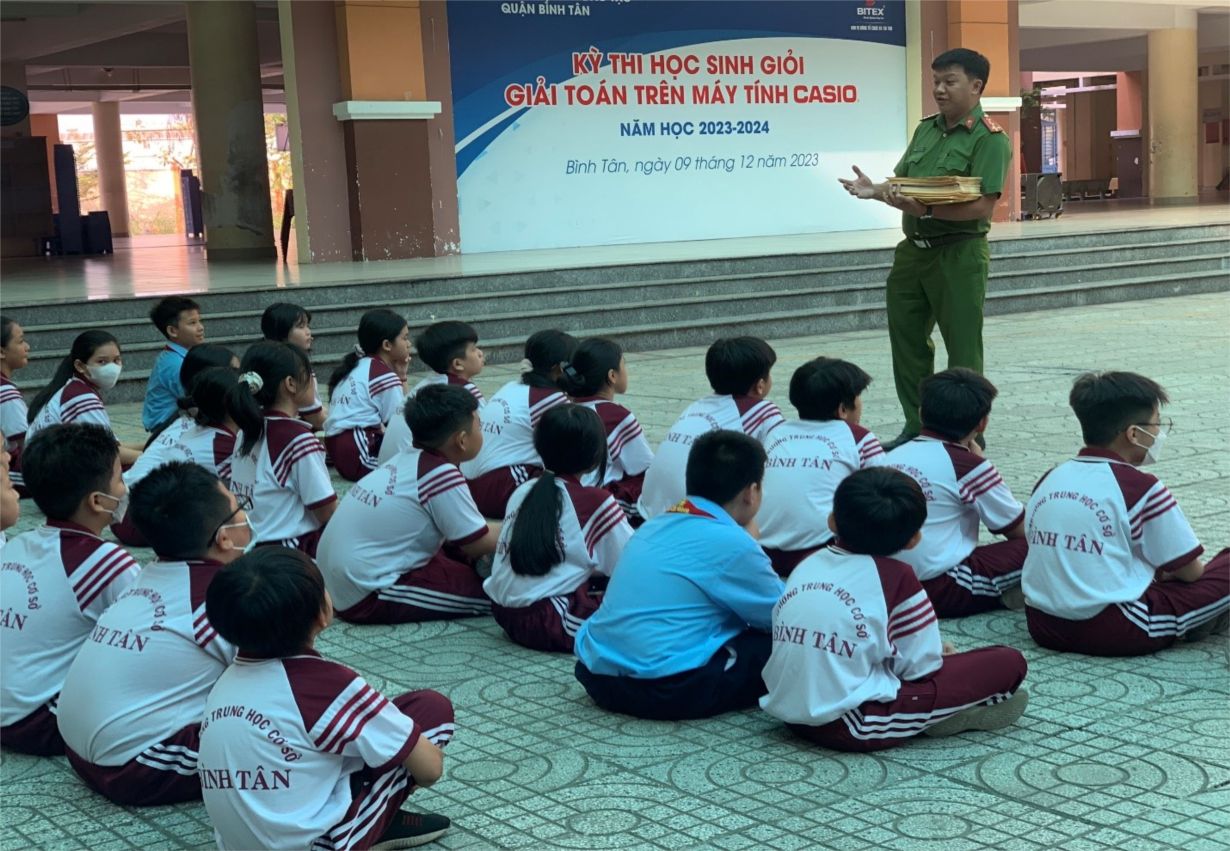 Nhằm đảm bảo an toàn giao thông cho học sinh đến trường trong năm học 2023 - 2024, sáng ngày 18 tháng 01 năm 2024, Công an phường An Lạc phối hợp với Ban Giám hiệu Trường Trung học cơ sở Bình Tân tổ chức phát gần 2100 tờ rơi tuyên truyền Luật Giao thông cho các em học sinh. Đồng thời, tuyên truyền trực tiếp cho các em hiểu hơn về: Luật Giao thông đường bộ, đường thủy, hướng dẫn các em cách tham gia giao thông đúng và an toàn, cách xử lý khi tai nạn giao thông và các hành vi, mức xử phạt khi vi phạm giao thông…