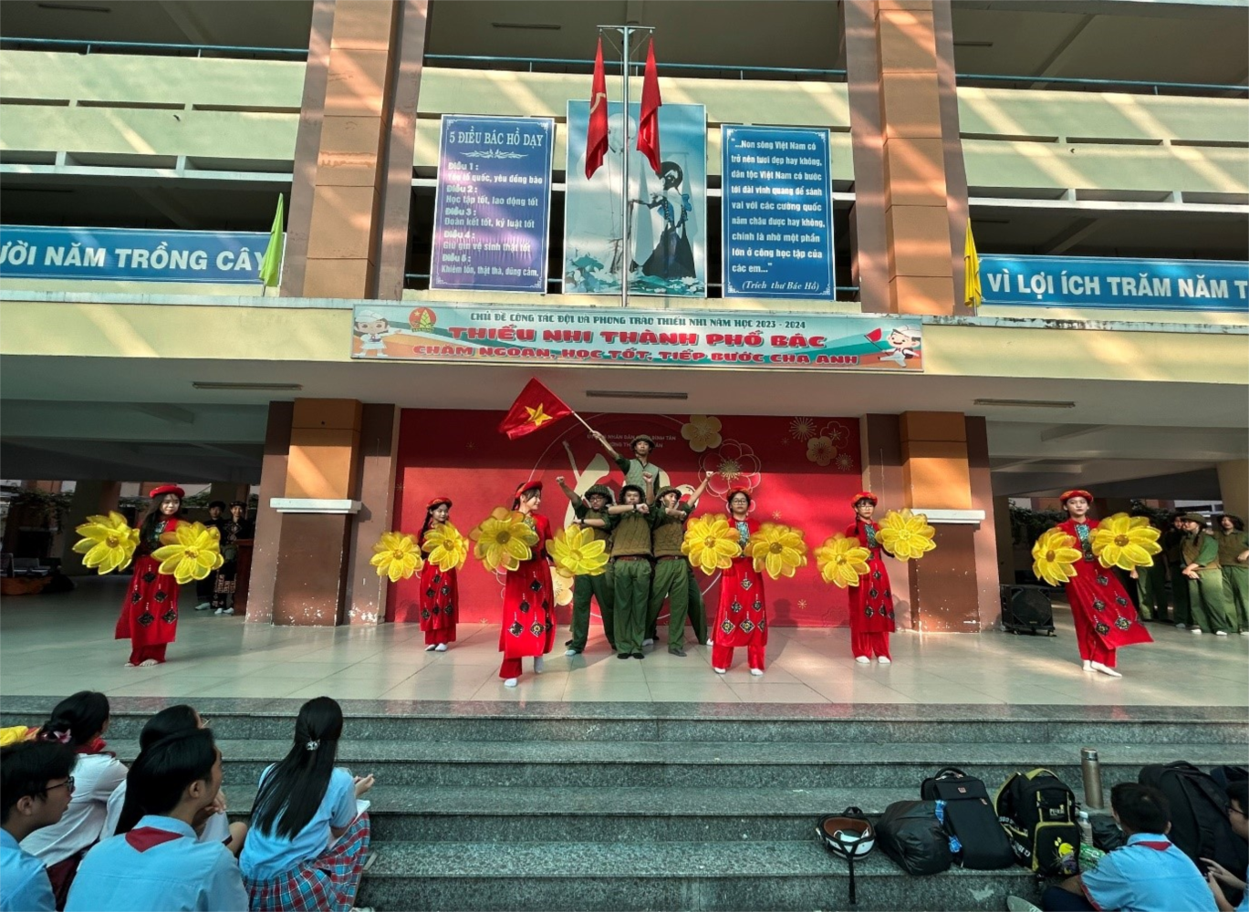 Sáng ngày 08/04/2024 Liên đội Trường THCS Bình Tân tổ chức sinh hoạt dưới cờ tuần 29. Nhằm tiếp tục hưởng ứng 7 tuần thi đua cao điểm của thiếu nhi quận Bình Tân chào mừng kỷ niệm 70 năm chiến thắng Điện Biên Phủ.