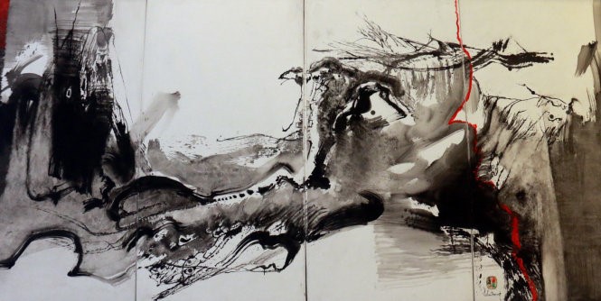 | Một tác phẩm bằng mực tàucủa Lê Bá Đảng - ảnh: Minh Tự chụp lại |