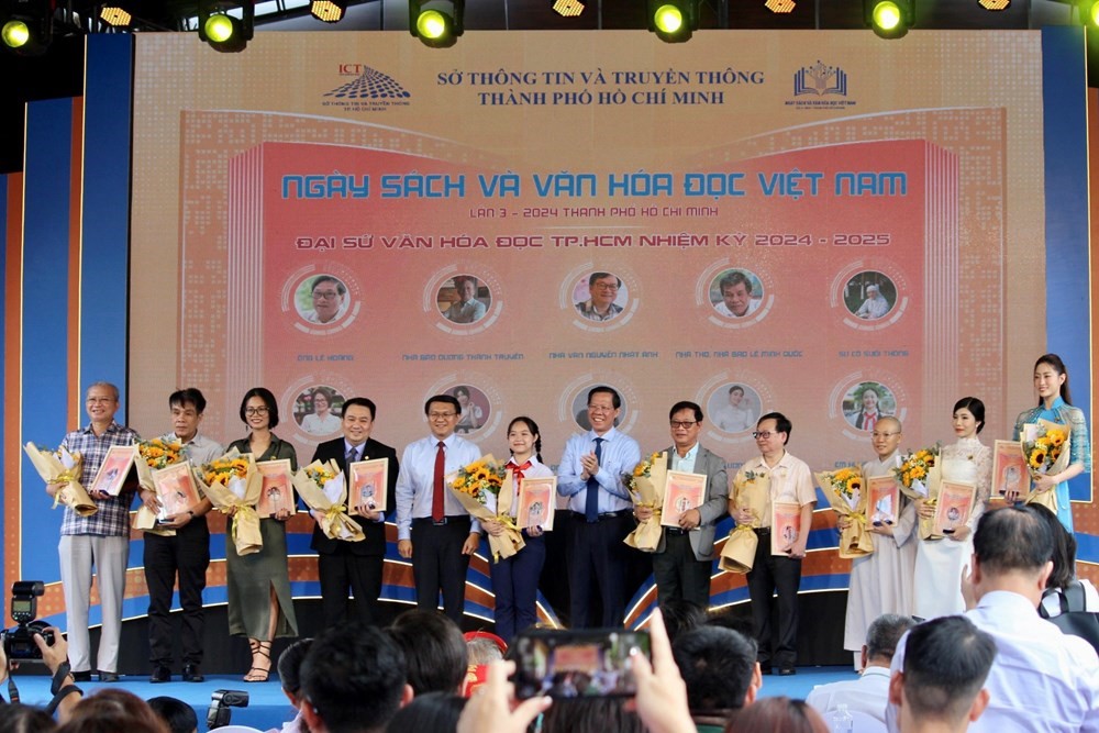 Cũng tại lễ khai mạc, BTC đã tiếp tục công bố 10 Đại sứ Văn hóa đọc TP.HCM nhiệm kỳ 2024 - 2025. Theo đó, các Đại sứ Văn hóa đọc là đại diện tiêu biểu trên nhiều lĩnh vực như xuất bản, báo chí, kinh tế, văn hóa-nghệ thuật, học sinh, sinh viên… nhưng có chung một tình yêu đối với sách, mong muốn lan tỏa tinh thần hiếu học, lan tỏa giá trị của sách, từ đó góp phần phát triển văn hóa đọc sâu rộng đến mọi tầng lớp nhân dân.