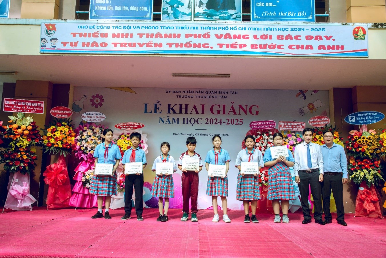 Trao học bổng cho các em học sinh có hoàn cảnh khó khăn trong Lễ khai giảng NH 2024 - 2025