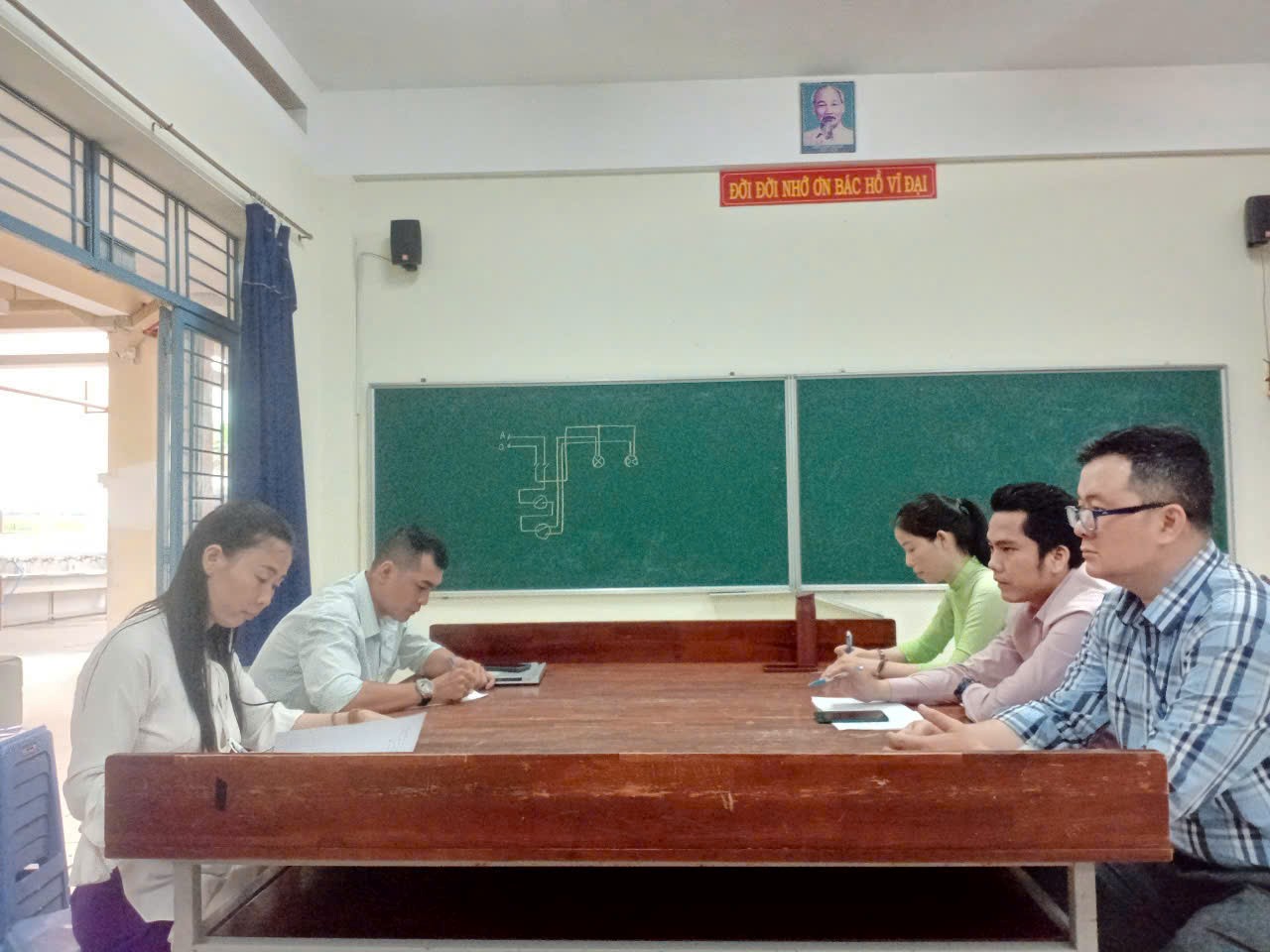 Thầy cô Tổ Công nghệ - Tin học đang sinh hoạt chuyên môn tại phòng TH Điện
