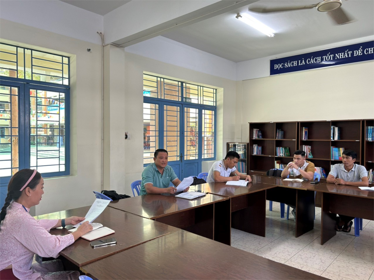 Thầy Ngọc Cường trao đổi công tác chuyên môn cùng cô Thu Hương