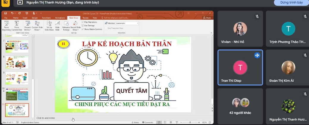 Cô Ái trình bày các bước lên lớp của tuần 7, 8