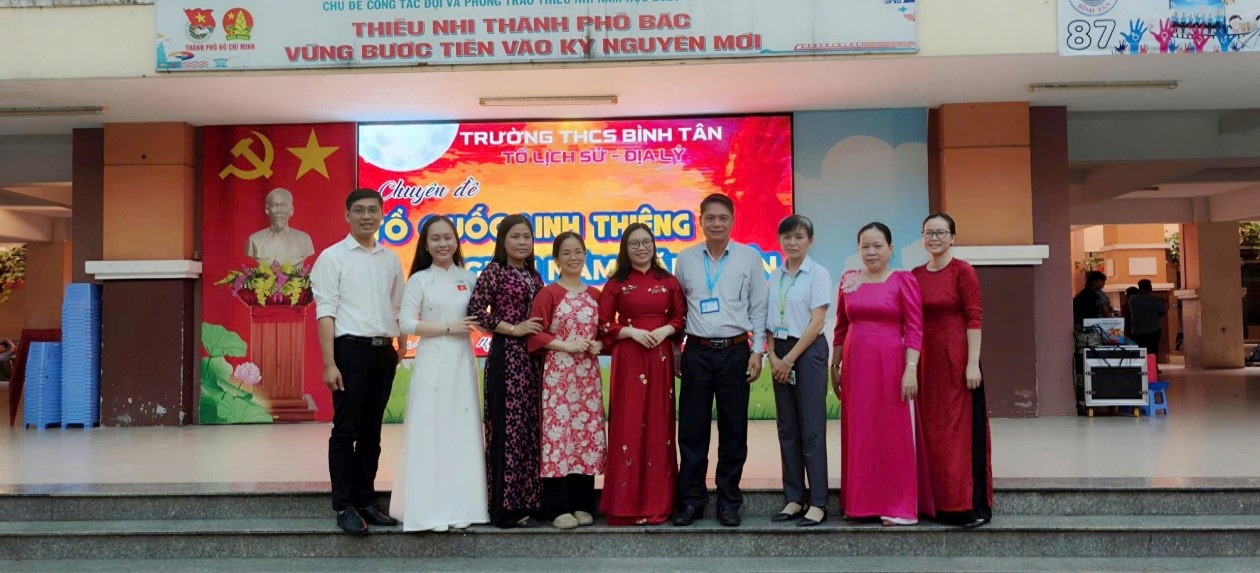 Vào lúc 16 giờ 10 phút, thứ Sáu ngày 17 tháng 4 năm 2026, tại sân trường THCS Bình Tân, tổ Lịch sử – Địa lí đã trang trọng tổ chức buổi sinh hoạt chuyên đề với chủ đề “Tổ quốc linh thiêng – nghìn năm văn hiến”. Đây là hoạt động ý nghĩa nhằm hướng tới ngày Giỗ Tổ Hùng Vương (mùng 10 tháng 3 âm lịch) và kỷ niệm ngày Giải phóng miền Nam, thống nhất đất nước – những dấu mốc thiêng liêng trong hành trình dựng nước và giữ nước của dân tộc. Chương trình đã thu hút sự tham gia của hơn 2000 học sinh cùng toàn thể cán bộ quản lý và giáo viên chủ nhiệm, tạo nên một không gian sinh hoạt tập thể quy mô lớn, giàu ý nghĩa giáo dục.