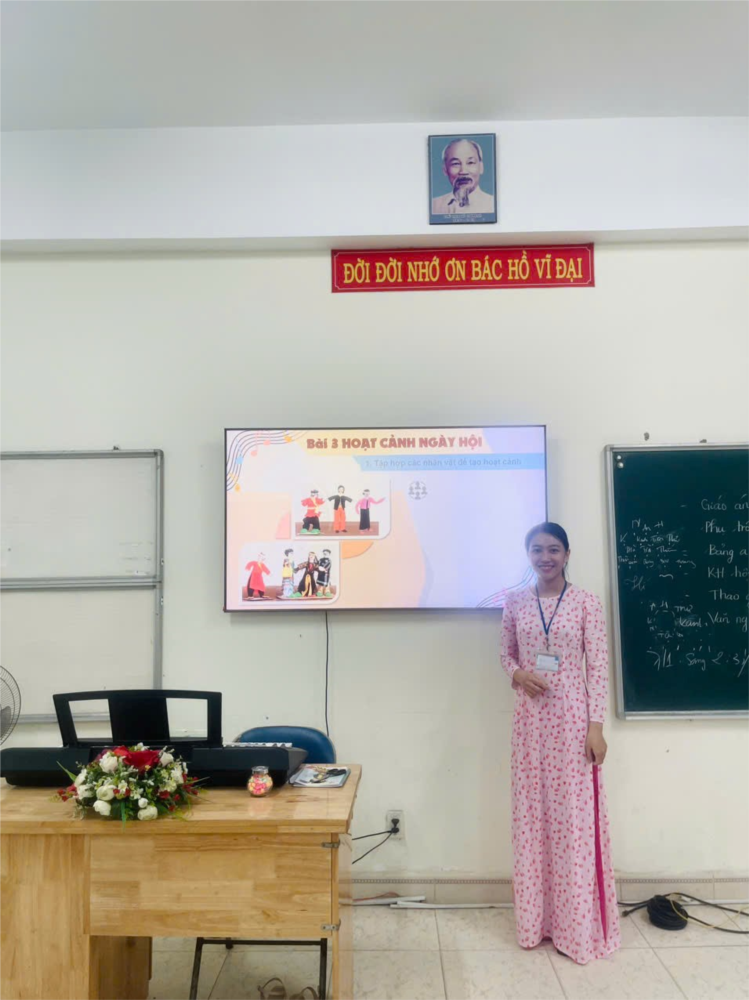 Cô Nguyễn Thị Kiều Oanh trình bày nội dung Bài 3: Hoạt cảnh ngày hội