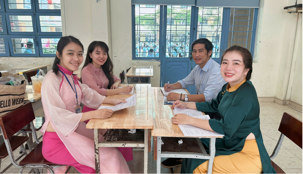 Kế tiếp, thầy Vinh cùng các cô của tổ tiếp tục trao đổi về các vấn đề chuyên môn trong quá trình công tác, bắt đầu bằng việc rút kinh nghiệm cho các tiết dạy học, các hoạt động trọng tâm cần thực hiện song song như; làm gốc tiểu cảnh tết, hỗ trợ tổ chức các hội thi nghệ thuật mừng xuân, bồi dưỡng Khéo tay kỹ thuật, trang trí mai đào của Đội và Công đoàn, bồi dưỡng các tiết mục văn nghệ cho hội xuân...