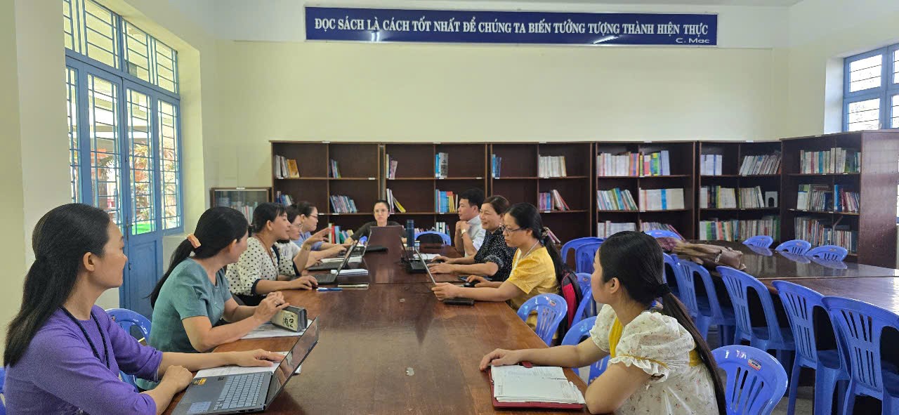 Vào sáng ngày 26/02/2025, tại phòng đọc sách giáo viên, Trường THCS Bình Tân đã diễn ra buổi sinh hoạt chuyên môn tổ Ngữ Văn theo phương pháp nghiên cứu bài học. Buổi sinh hoạt có sự tham gia của 13/14 giáo viên trong tổ, dưới sự chủ trì của cô Võ Thị Hồng Vân - tổ trưởng chuyên môn.