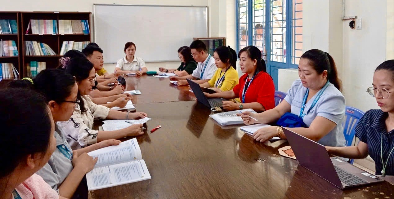 Thầy cô Tổ Ngữ Văn trong buổi sinh hoạt chuyên môn