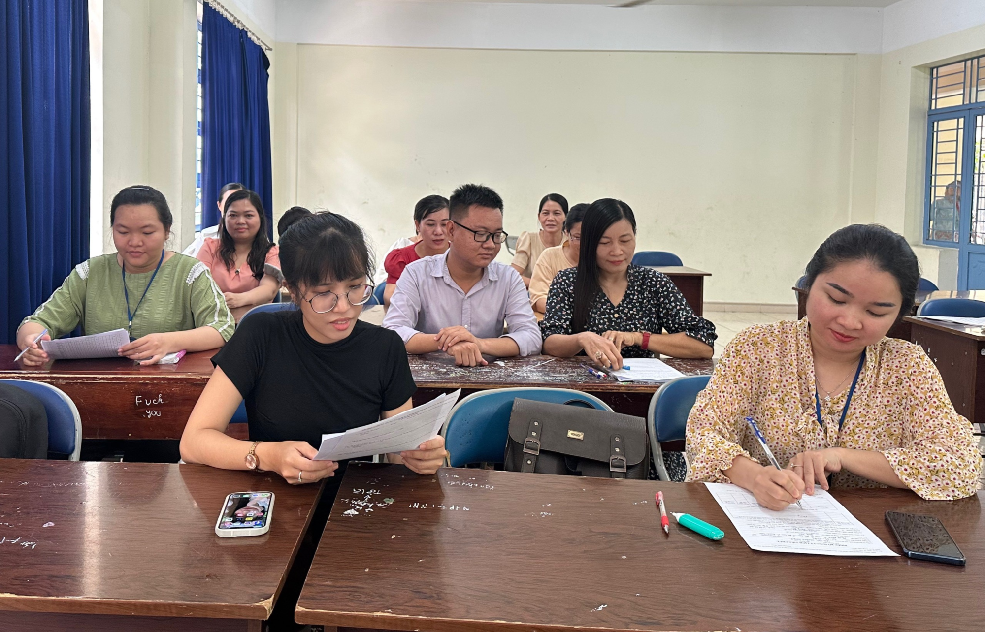 Thầy cô trong tổ đang triển khai đánh giá viên chức năm học 2023-2024