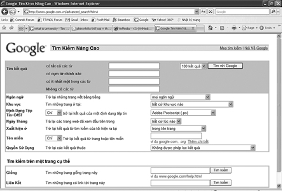 - Để kết quả không chứa những từ khóa không cần thiết, bạn điền những từ khóa không mong muốn tìm được vào mục "any of these unwanted words" . Sau khi đã điền những thông tin cần thiết cho sự tìm kiếm, bạn click vào nút Advanced Search để bắt đầu quá trình tìm kiếm.